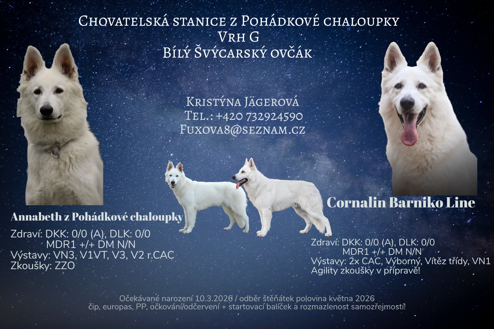 11.1.2026 proběhlo krytí Cornalina a Annabeth , pokud se vše podaří štěňátka přijdou na svět v první polovině března a do nových domovů půjdou v polovině května